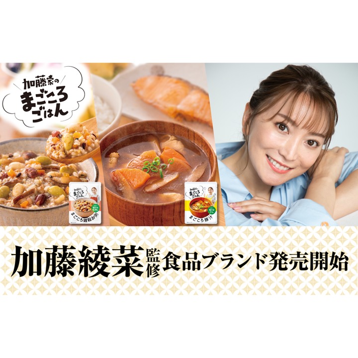 “加藤綾菜”が監修した商品第1弾として、「まごころ豚汁」「まごころ雑穀お粥」の2種類を3月上旬より全国の生活協同組合・Amazonにて順次販売を開始いたします。